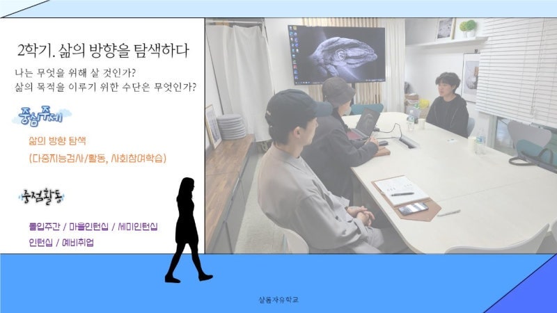 1학기는 #삶의기초를세우는교육, 2학기는 #삶의방향을탐색하는교육, 3학기는 #삶의대안을모색하는교육 을 진행합니다.